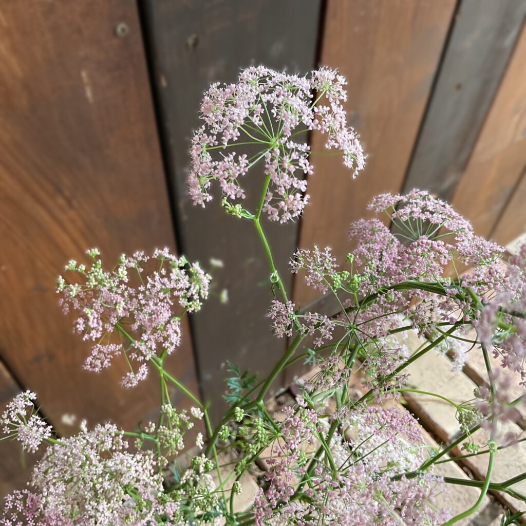 正式なお名前はピンピネラと思われるのですが、レースフラワー.ロゼアと言うお名前で来てくれています♪