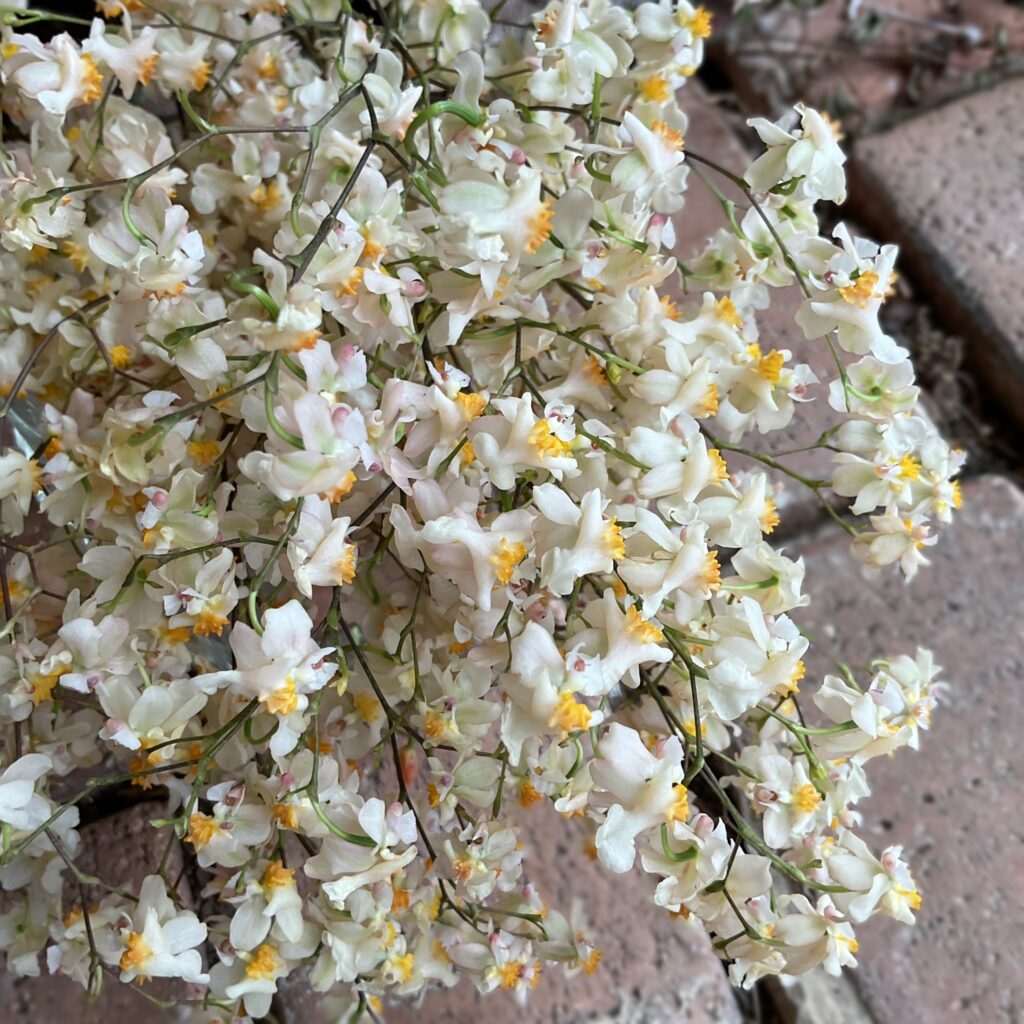 この子達にもお会いしたくて♪ふんわり甘い香りも届けてくれています♪小さな小さなお花が集まるとこんなにも可愛い!オンシジューム.夢香^ ^
