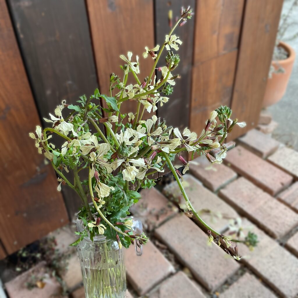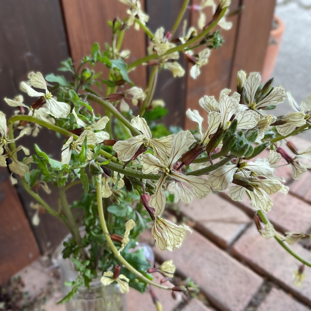 こちらはまだ初めましてのルッコラのお花♪あのサラダなどで食べられているルッコラのお花です〜♪