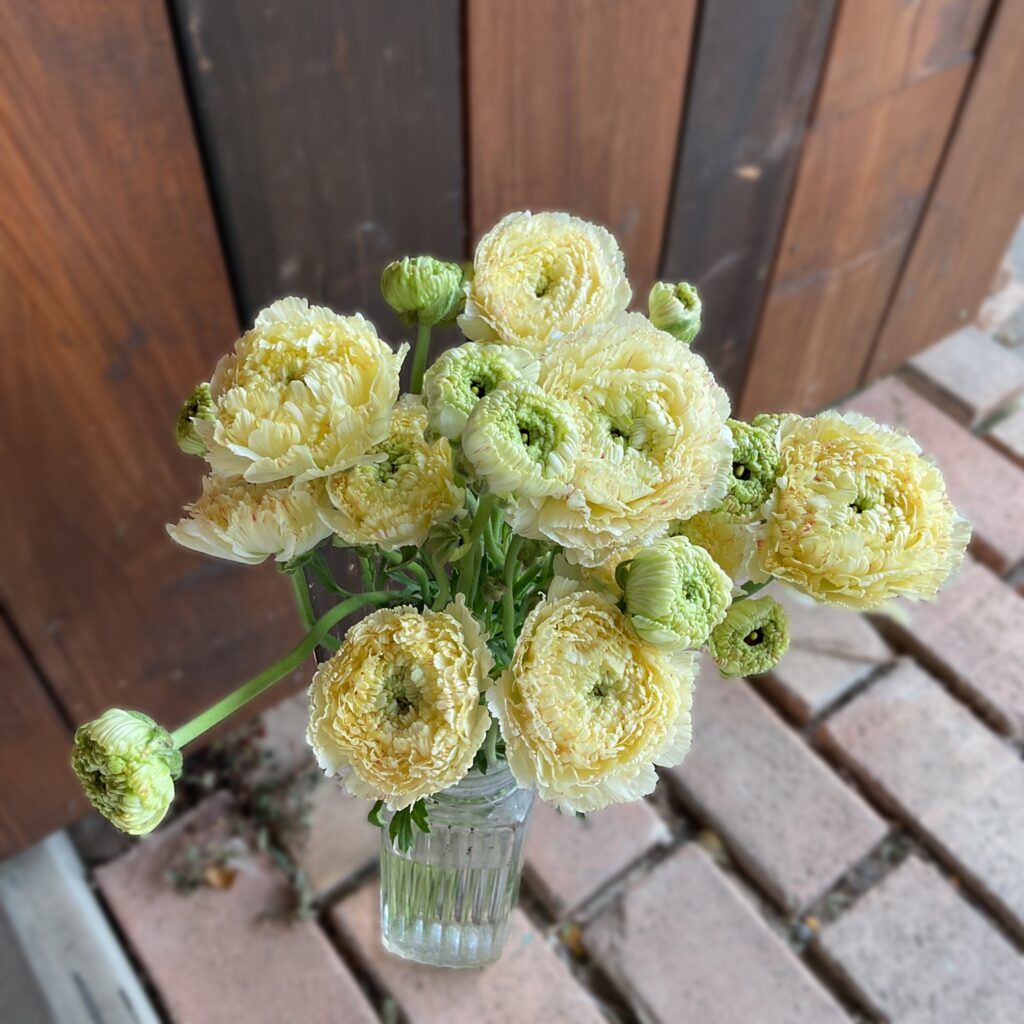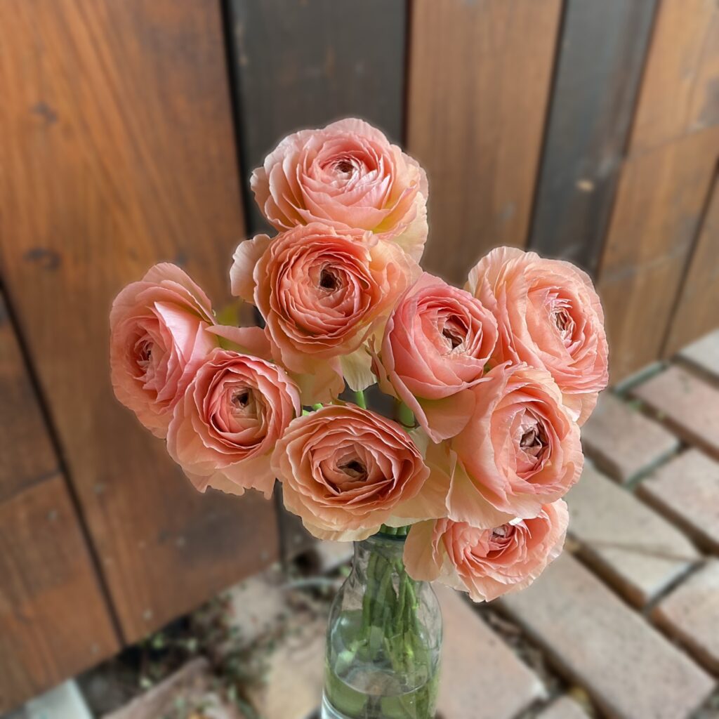 ふわふわ〜なお色と柔らかな表情が素敵で、お迎えしたいな〜と思っておりましたラナンキュラス.モロッコ白桃♪