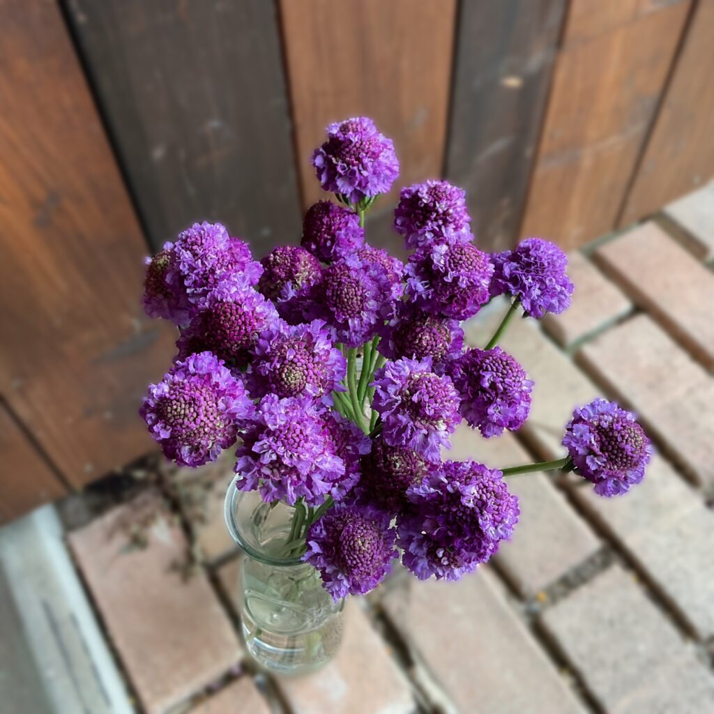 スカビオサ達も放っておけない!今回も福岡県は小山花園さんよりモコパープル♪先日ご紹介させていただきましたポンポンホワイトと同じく、小顔さんでまるまるなスカビオサ達です(^^)