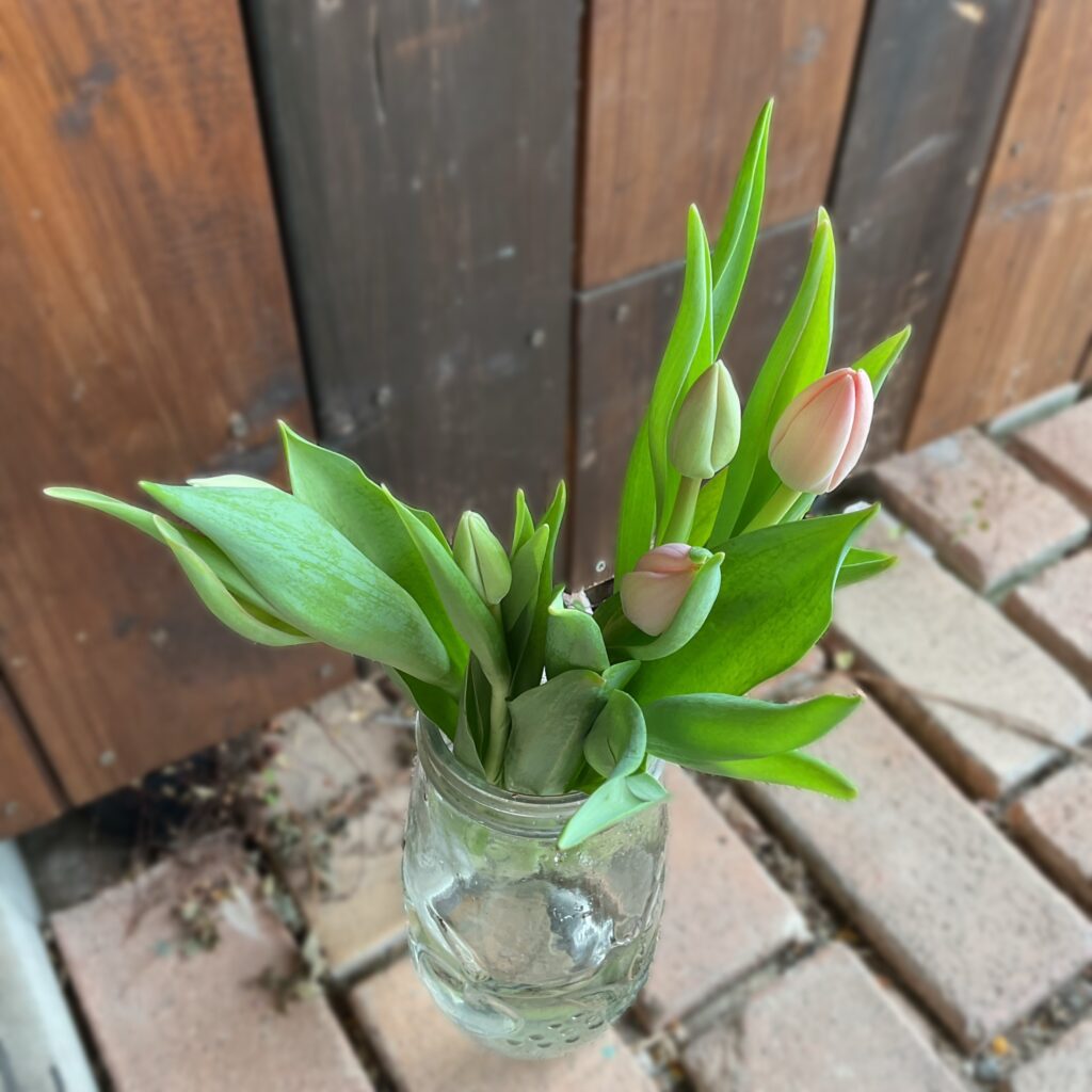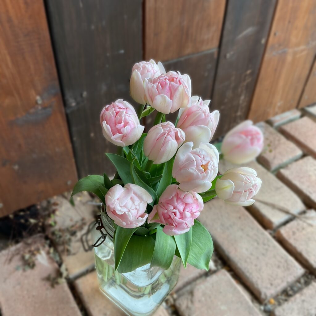 チューリップ達もお迎えしております♪まずはほんのりピンクのフォックストロット♪