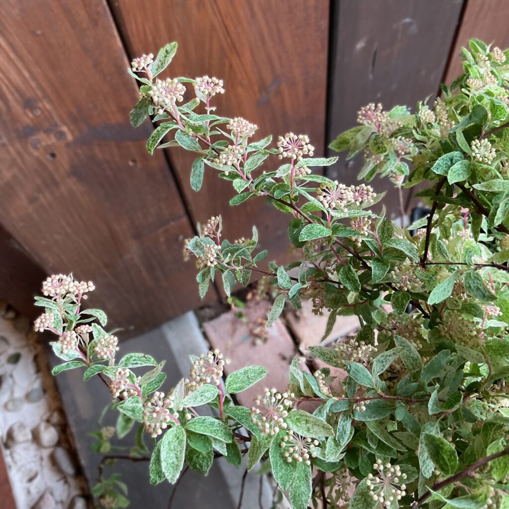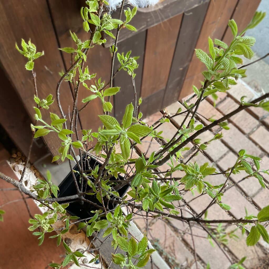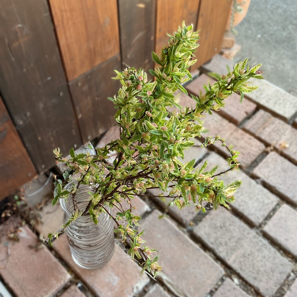大好きなコデマリ.ピンクアイス♪散り斑の葉とピンク色のステム、そして小さな蕾〜今回の子達は枝ぶりボリューミー!