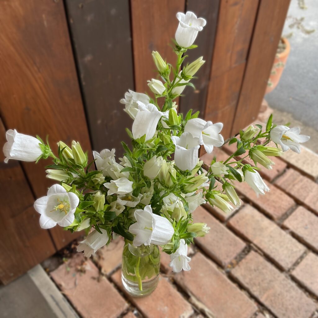 この子達のお迎えが始まると、また一歩、季節が進んでいるのだと実感します♪カンパニュラ.チャンピオンホワイト♪