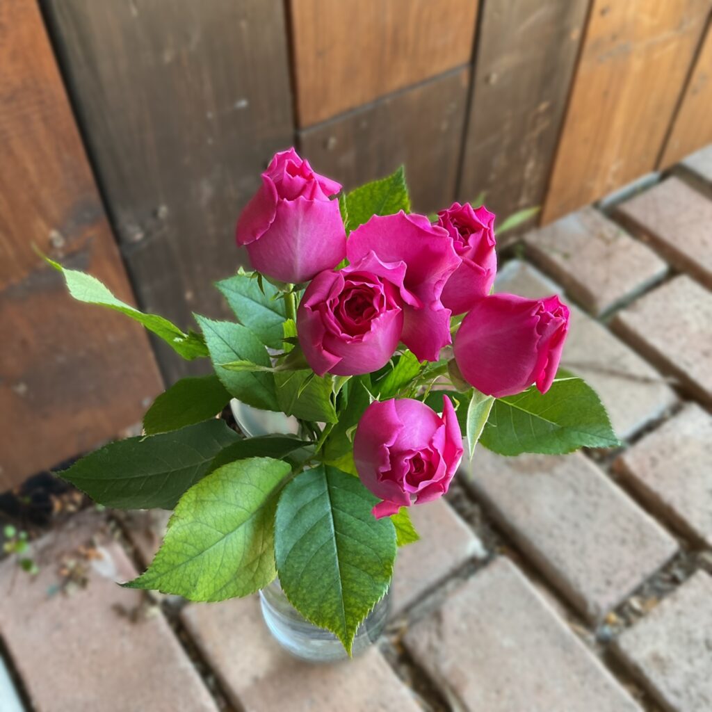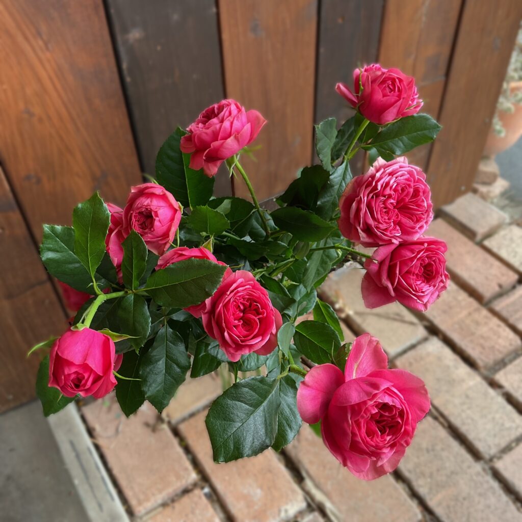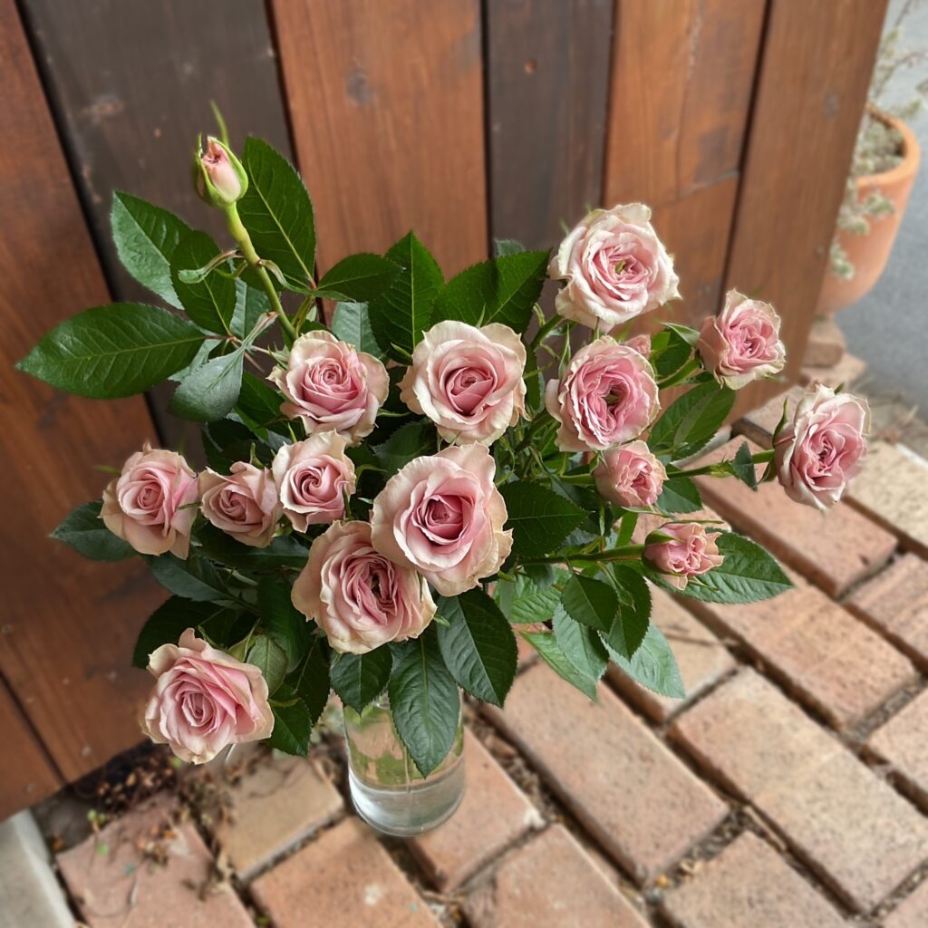 このサクラは淡めに咲いてくれたシャルロットを差別化するためにサクラと名付けているそう♪シャルロットはもっと濃いめのローズピンクなので、この子達はふんわりと柔らかな印象です(^^)