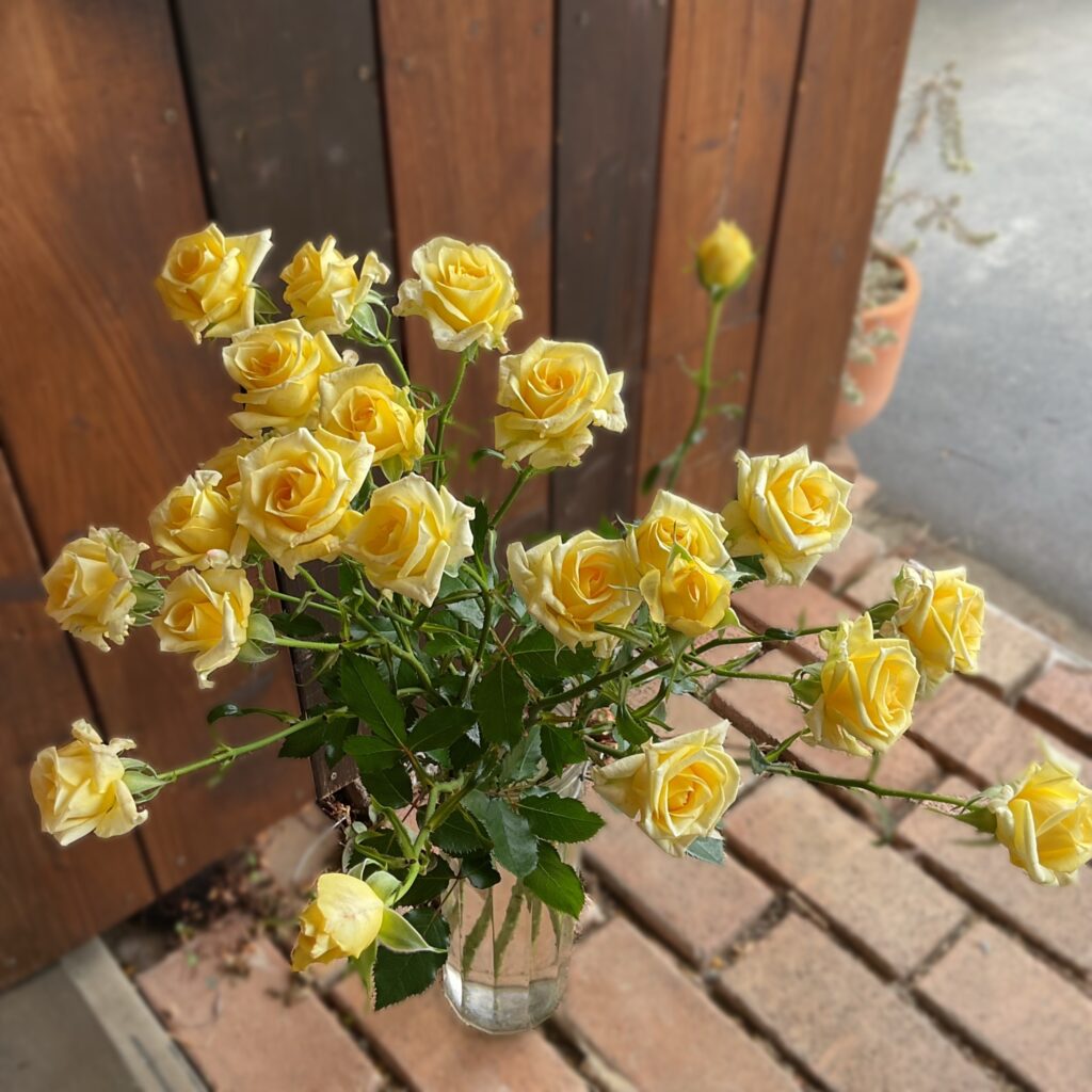 通常のヤマブキは鮮やかなイエローなのですが、この子達は淡めのイエロー♪柔らかな印象がとっても爽やかなのです〜