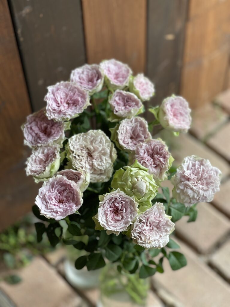 元々ガーデンローズなので切り花としてのお披露目を目標に育てて行くには、こちら側が想像も出来ないご苦労がおありだと思います。井上バラ園さんのこの子達に対する強い思いと!たくさんのご苦労が実りに実って!こうしてお迎えさせていただく事が出来ました^ ^