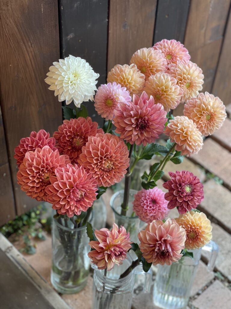 毎週水曜日の定期便としてお迎えしている彩花キタムラさんよりのダリア達♪今週は本日金曜日のお迎えです♪