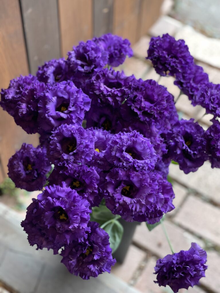花束のご依頼をくださいました方よりのリクエストで今週も♪深い深い紫色のトルコキキョウ.プリマブルー♪
