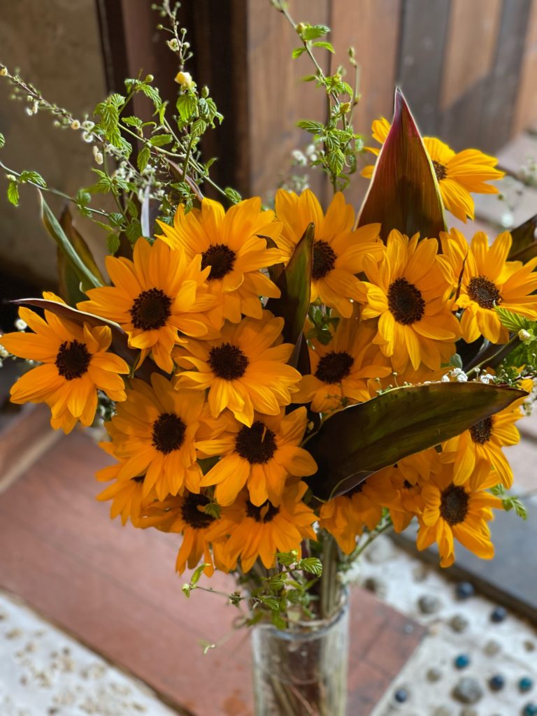 お写真はふた束ご一緒にお撮りしております♪ご依頼をくださいましたご夫妻よりご希望をいただいたひまわりをたっぷりと。。。