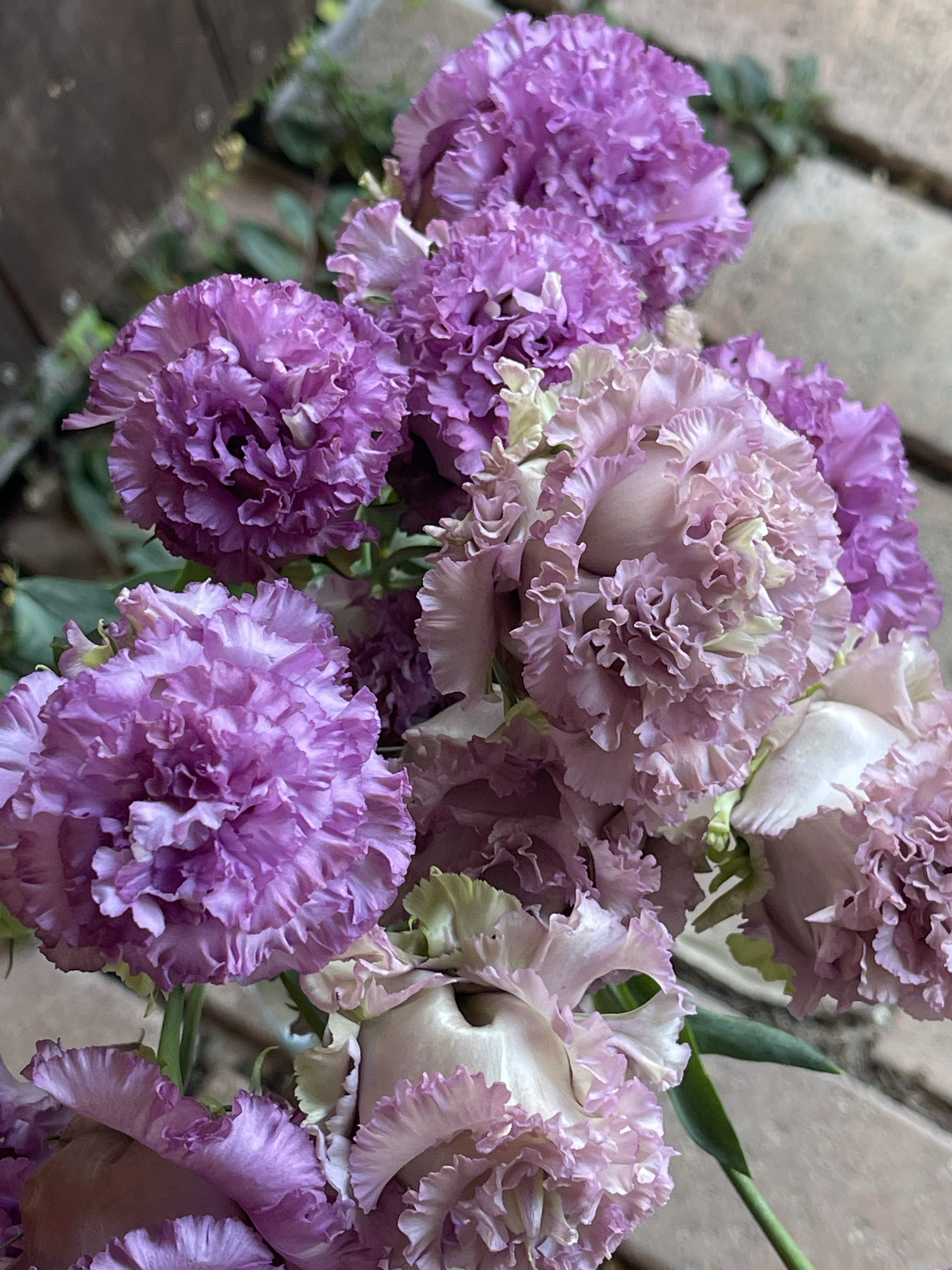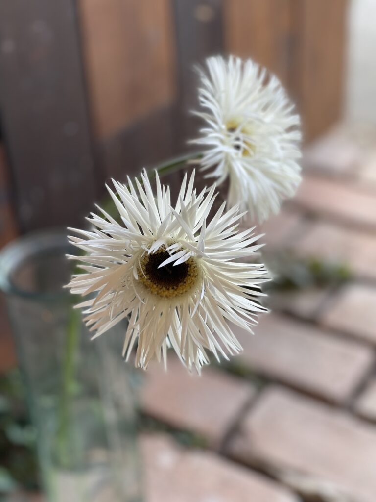 花びらには強めのフリンジ♪パープル、ベージュ、ピンク。。。お花ひとつひとつそれぞれに違った表情を見せてくれている所にキュンです〜