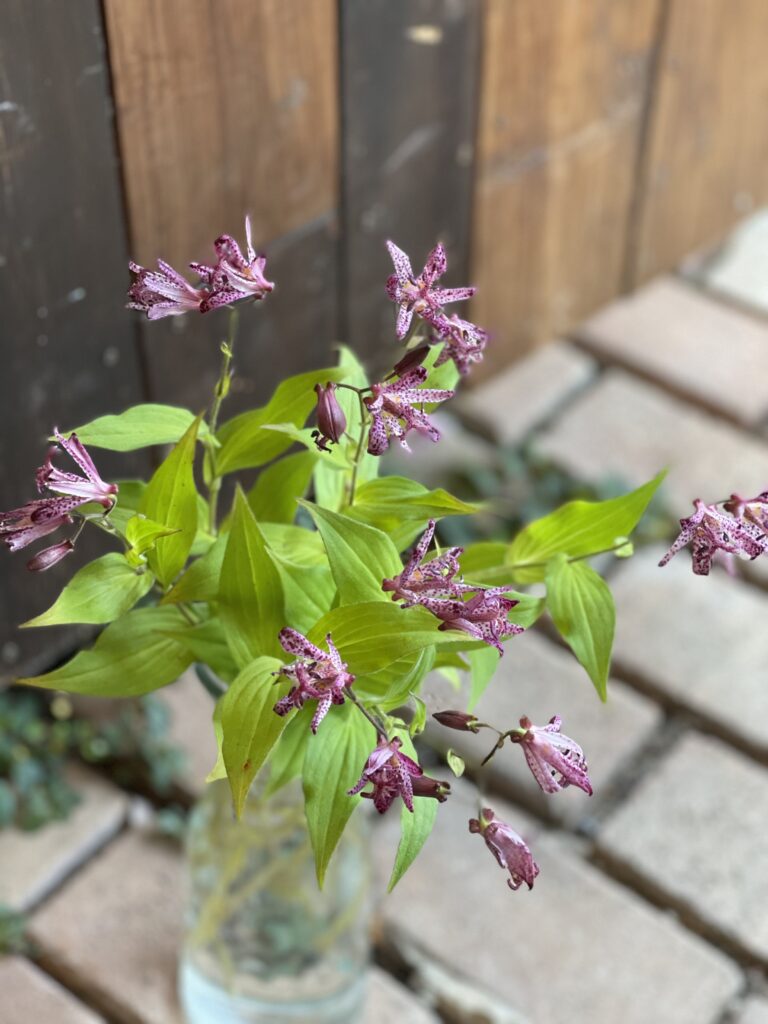 秋のお花の代表メンバー♪大人なボルドーカラーの斑点が特徴のホトトギス.シノノメ♪