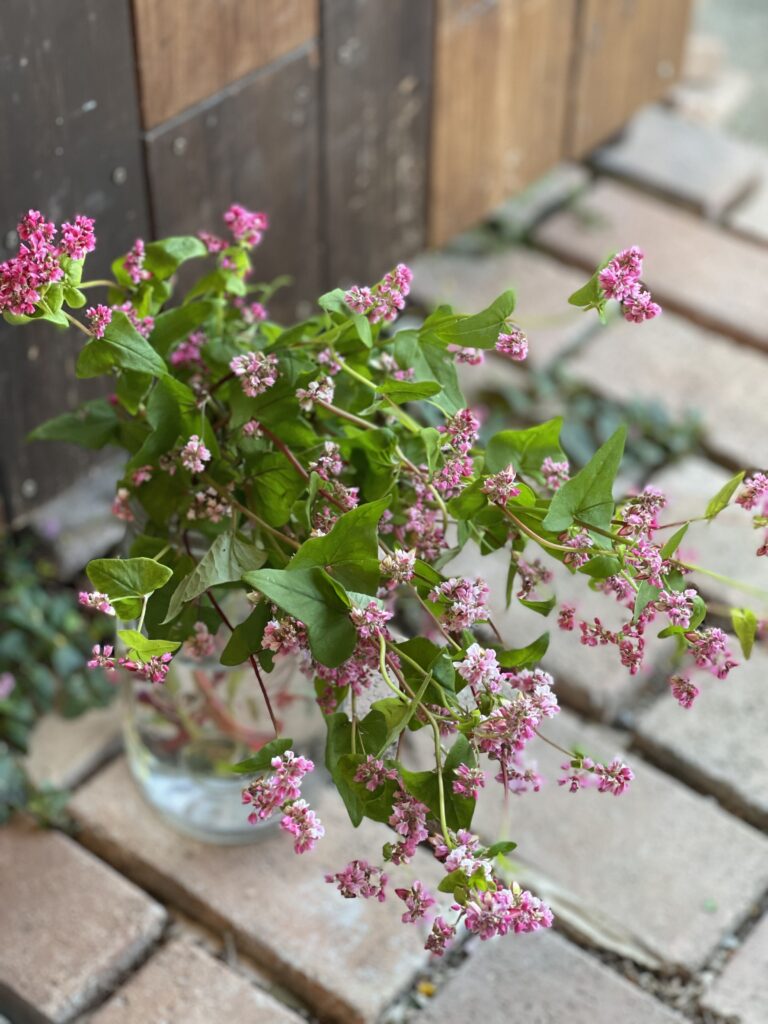 ソバの花は通常白花なのですが、この子達はピンク♪淡めな子からちょこっと濃いめの子まで、小さな小さなお花がぎゅっと集まって咲いてくれています♪