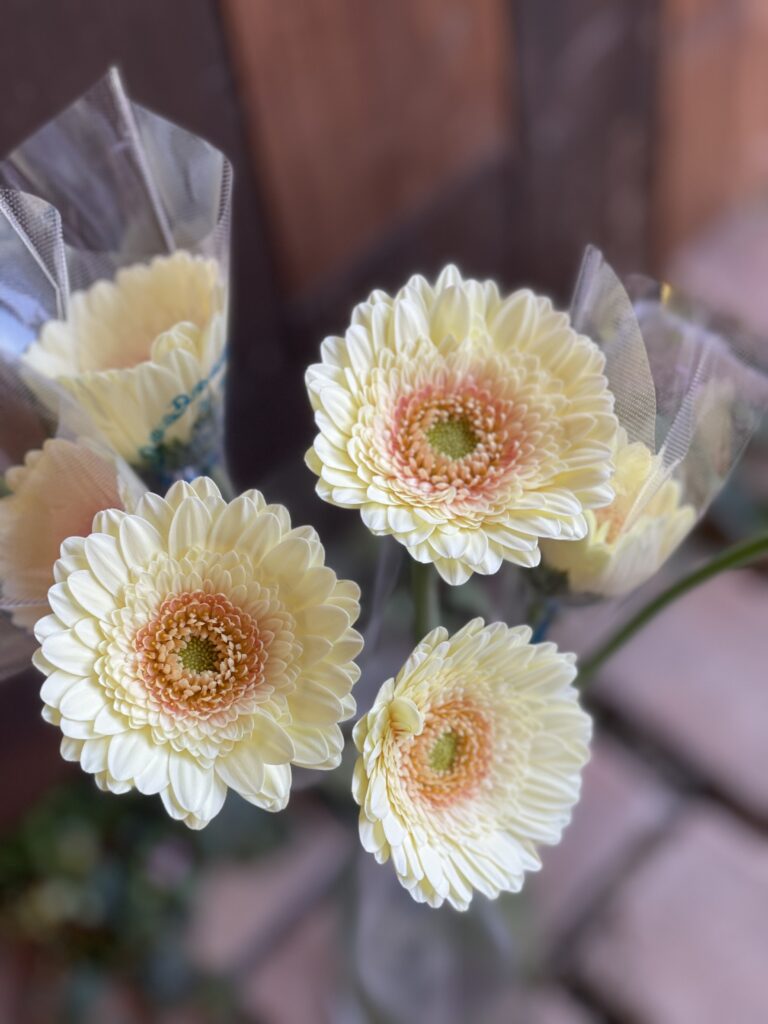 気温も下がって来て、この子達のお迎えも少しずつ♪柔らかなお色に癒されます。。。ガーベラ.ロミリー♪