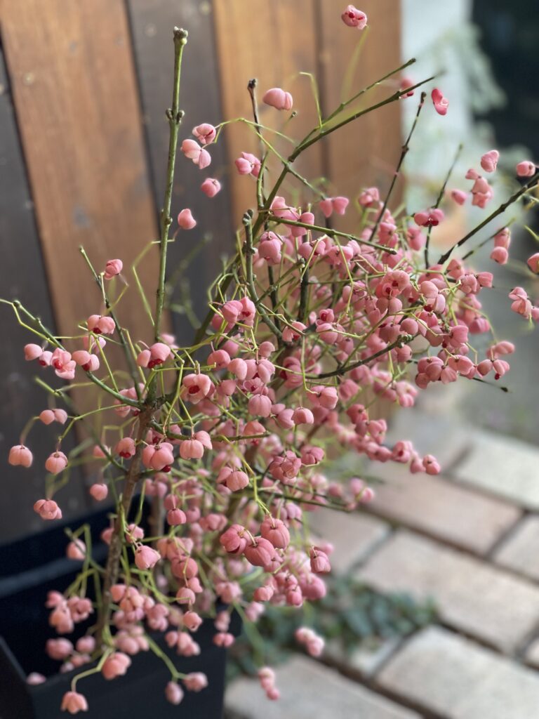 お名前は聞いた事がある!と言う方も多いかもです♪今の季節限定〜ピンクの萼に赤い実が♪マユミの木^ ^