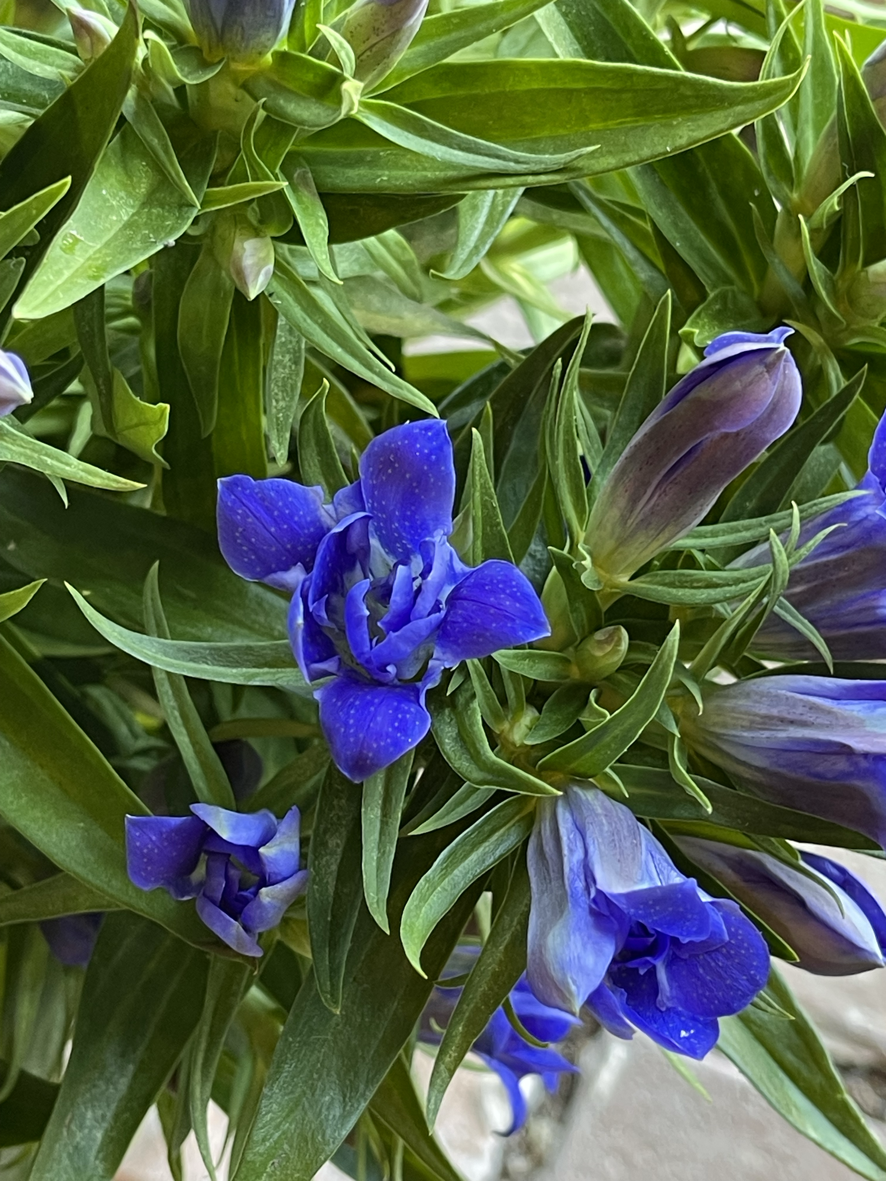 濃いめの紫色のお花はベル型で、葉のグリーンとのコントラストが美しい〜