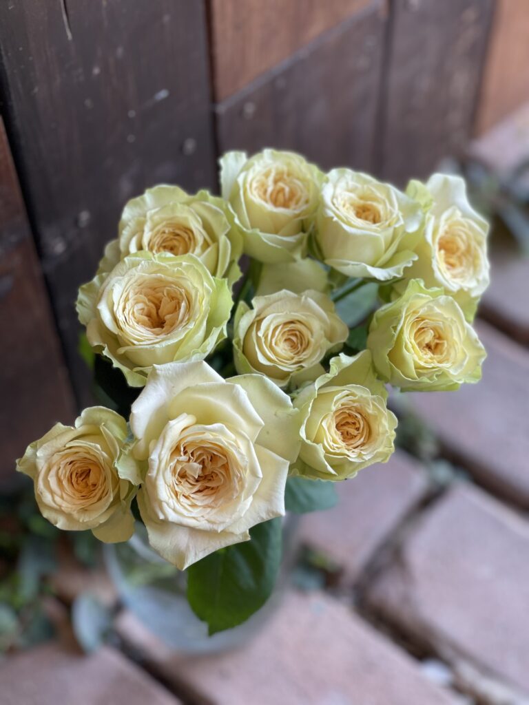 丸葉タイプのユーカリはとにかく活躍の場が多くて、ブーケやアレンジメントにほぼ100%出てもらっています♪